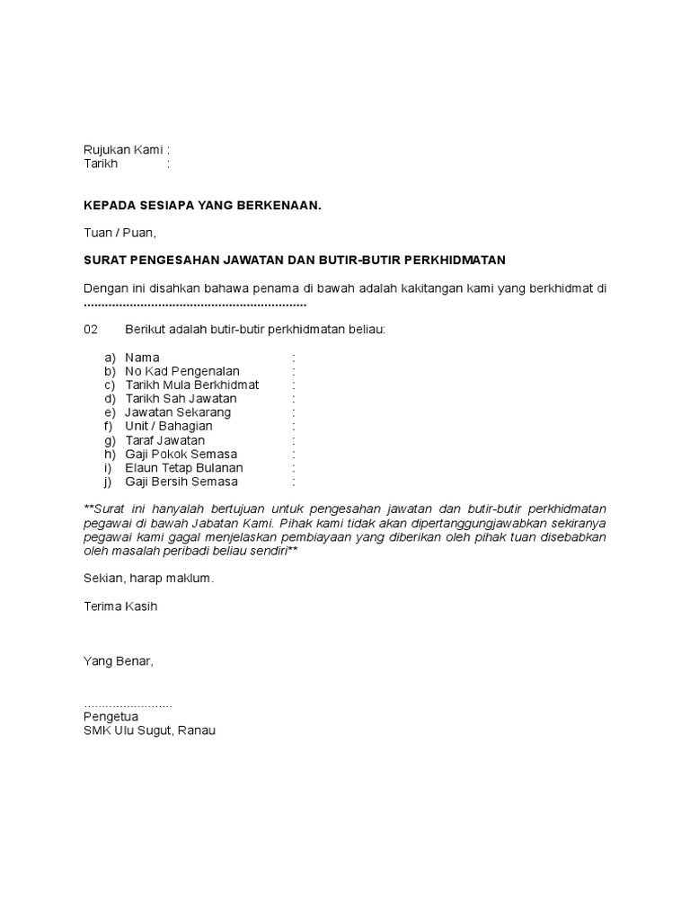 Surat Pengesahan Jawatan Untuk Buat Loan Pdf